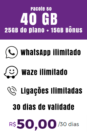 Após consumir 100% da internet, você continua navegando em velocidade reduzida durante a vigência do seu pacote.